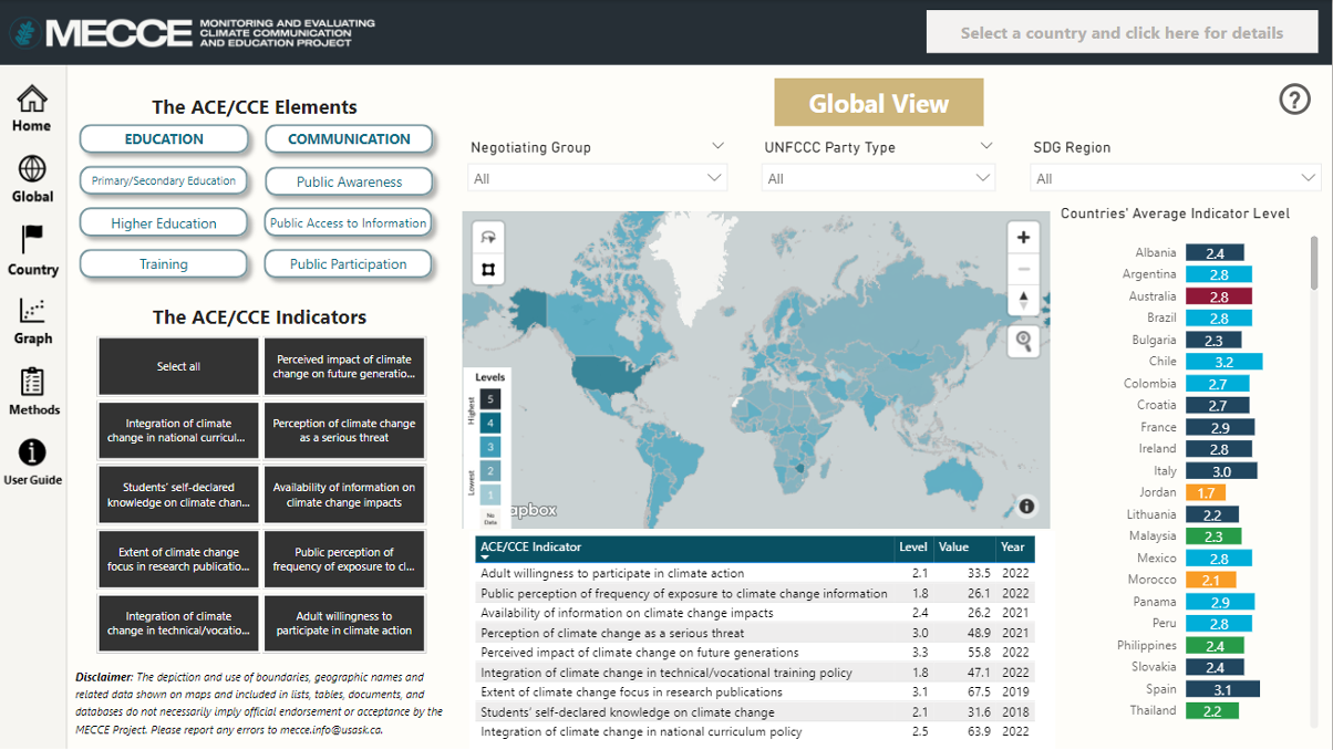 We are pleased to share that our Interactive Data Platform (IDP), launched during COP27, has been updated. The IDP aims to support benchmarking, target setting, reporting, and decision-making at international, regional, national, and local levels. The Platform is intended for policymakers, researchers, and other interested stakeholders. This recent update facilitates a fully interactive experience for the users to easily explore indicators and relevant global, regional, and national data focused on climate change communication and education (CCE) and  Action for Climate Empowerment (ACE). The update also includes a User Guide that describes how to navigate the most important functions.